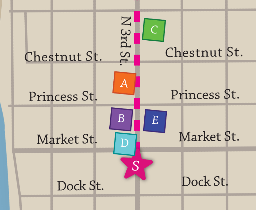 Limited parking is available Downtown. 3rd Street will be blocked by barricades with appointed security guards at each barricade. Vehicles will not be permitted past barricades during the morning of the Parade. Parking decks are available along 2nd Street, and guests can access 2nd Street via Princess Street until 9am. Parade staging will occur from Castle Street to Market Street, between Front Street to 5th Street. There is no parking or thru traffic in these areas. Any rideshare transportation may drop off guests at any area outside of barricades.