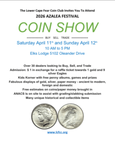 The Coin Show is presented by the Lower Cape Fear Coin Club. For more information please visit their webpage www.lcfcc.org